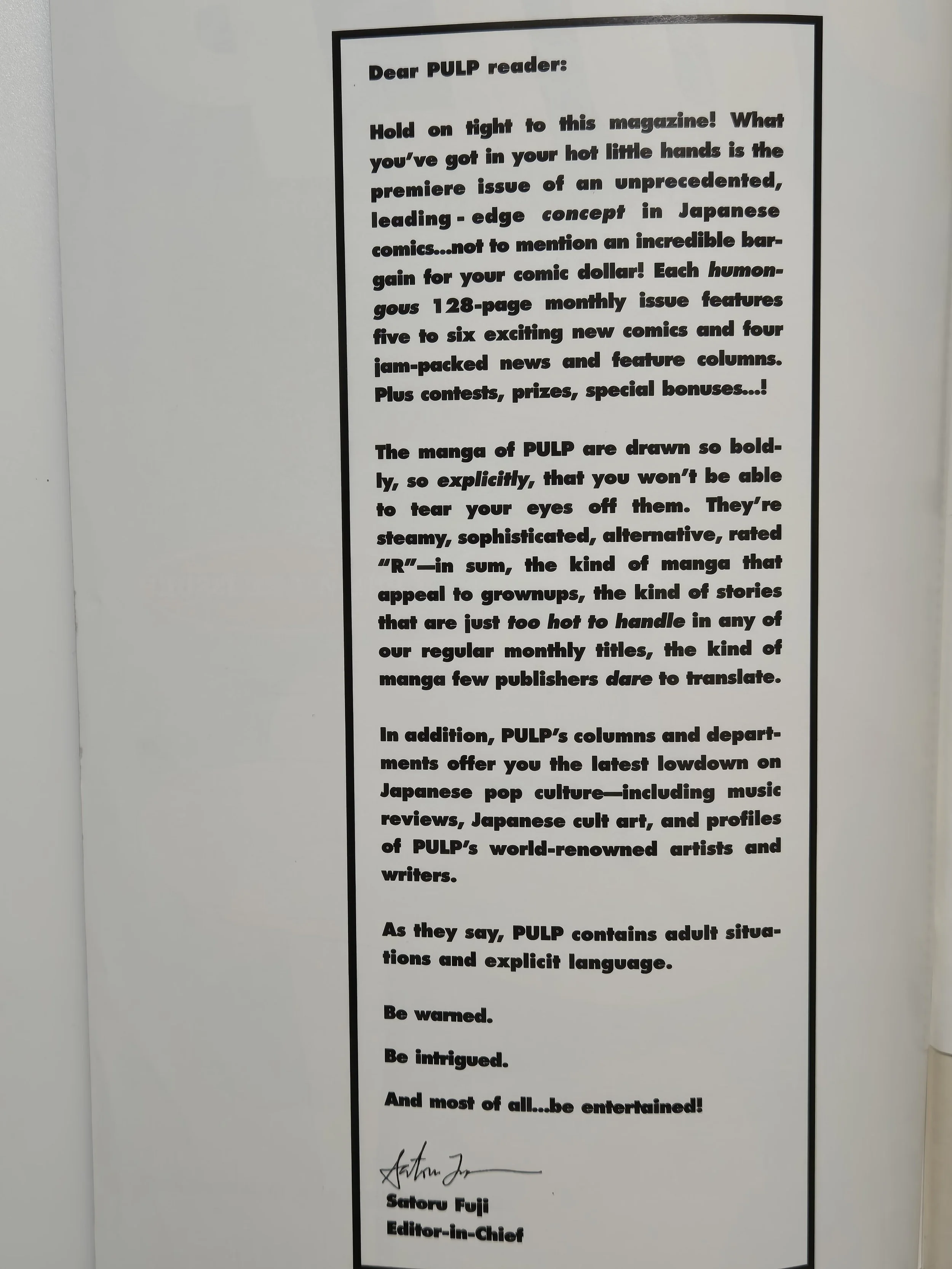 Volume 1 Issue 1 Dear PULP Reader Inside cover